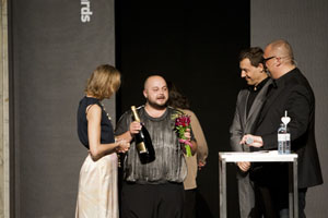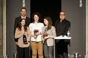 Gewinnerin Christina Steiner/GON mit Mag. Georg Staudinger (Land Rover Austria), Hermann Fankhauser und Helga Ruthner (Wendy&Jim), Andreas Oberkanins (festival for fashion & photography) (c) Jürgen Hammerschmid | |