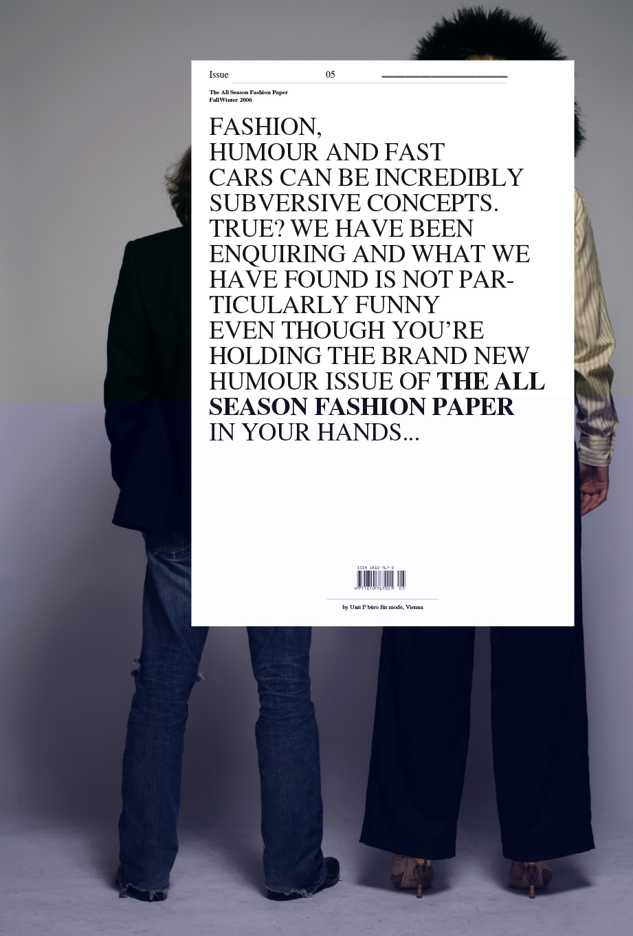 In this issue Austrian as well as international photographers, illustrators, designers, artists and journalists show their view of the topic "Humour", they researched and watched out very impressively about humour and its different fathers.