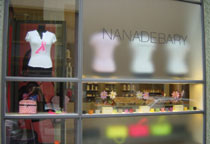 Fashion Walks 04 als Erkennungszeichnung in den Schaufenstern platziert und